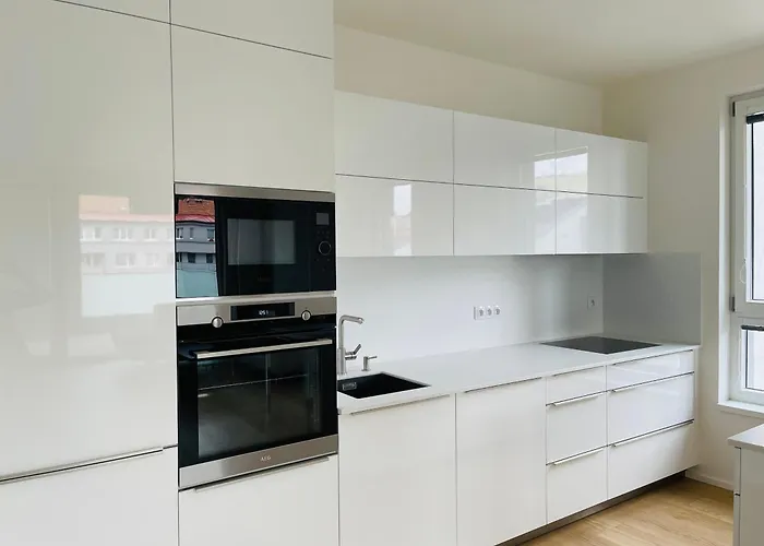Este apartamento dispone de una pequeña cocina con cafetera, nevera y un horno. El alojamiento está a unos minutos a pie de la parada de autobuses Kloboucnicka. En el Apartamento Nová Nuselská, a los huéspedes se les ofrece cocinita.